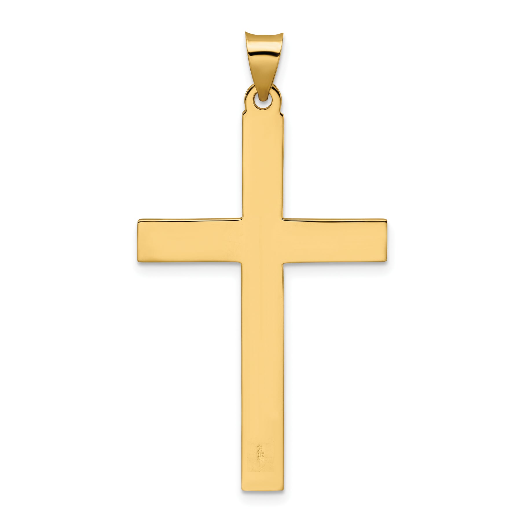14k Polished and Line Design Solid Cross Pendant