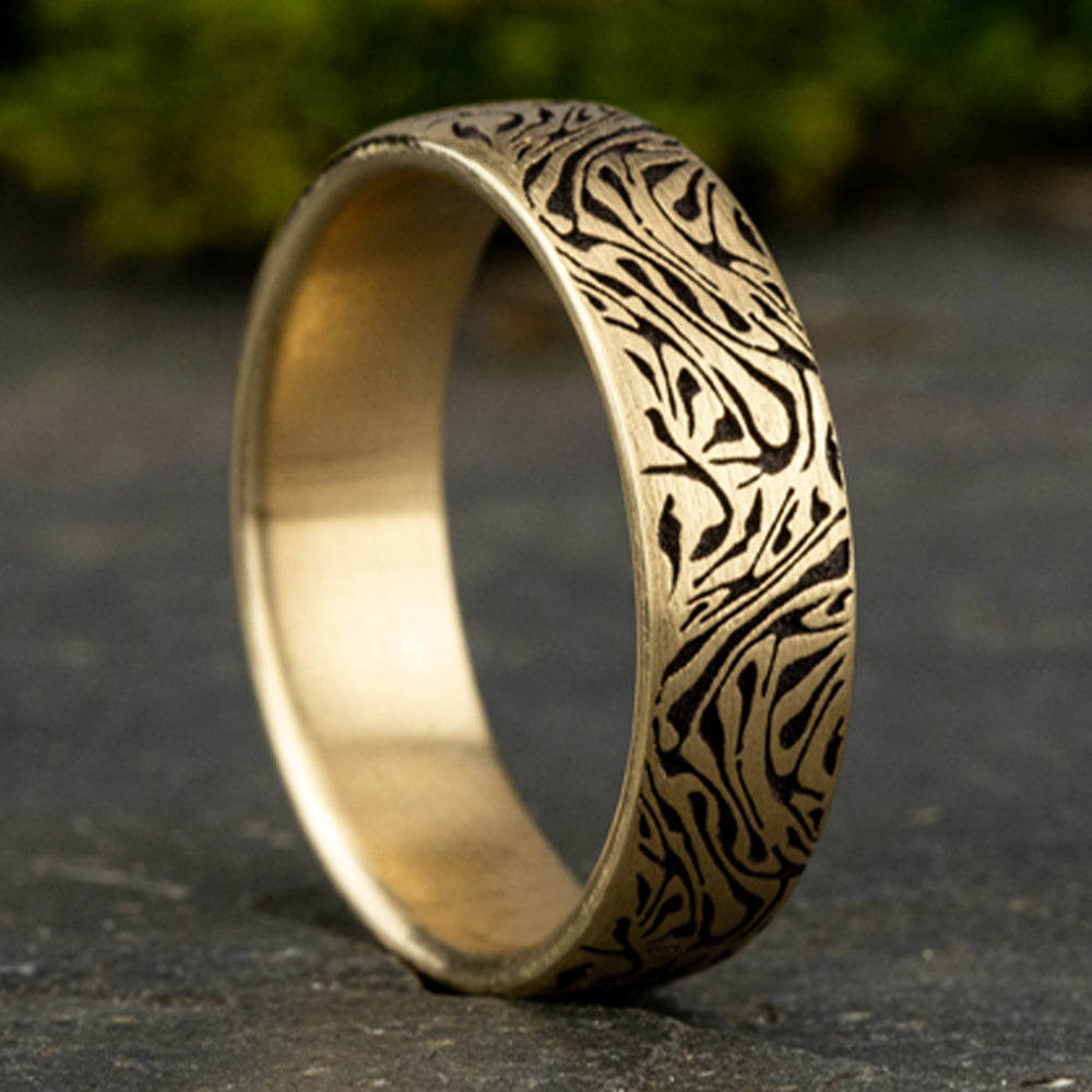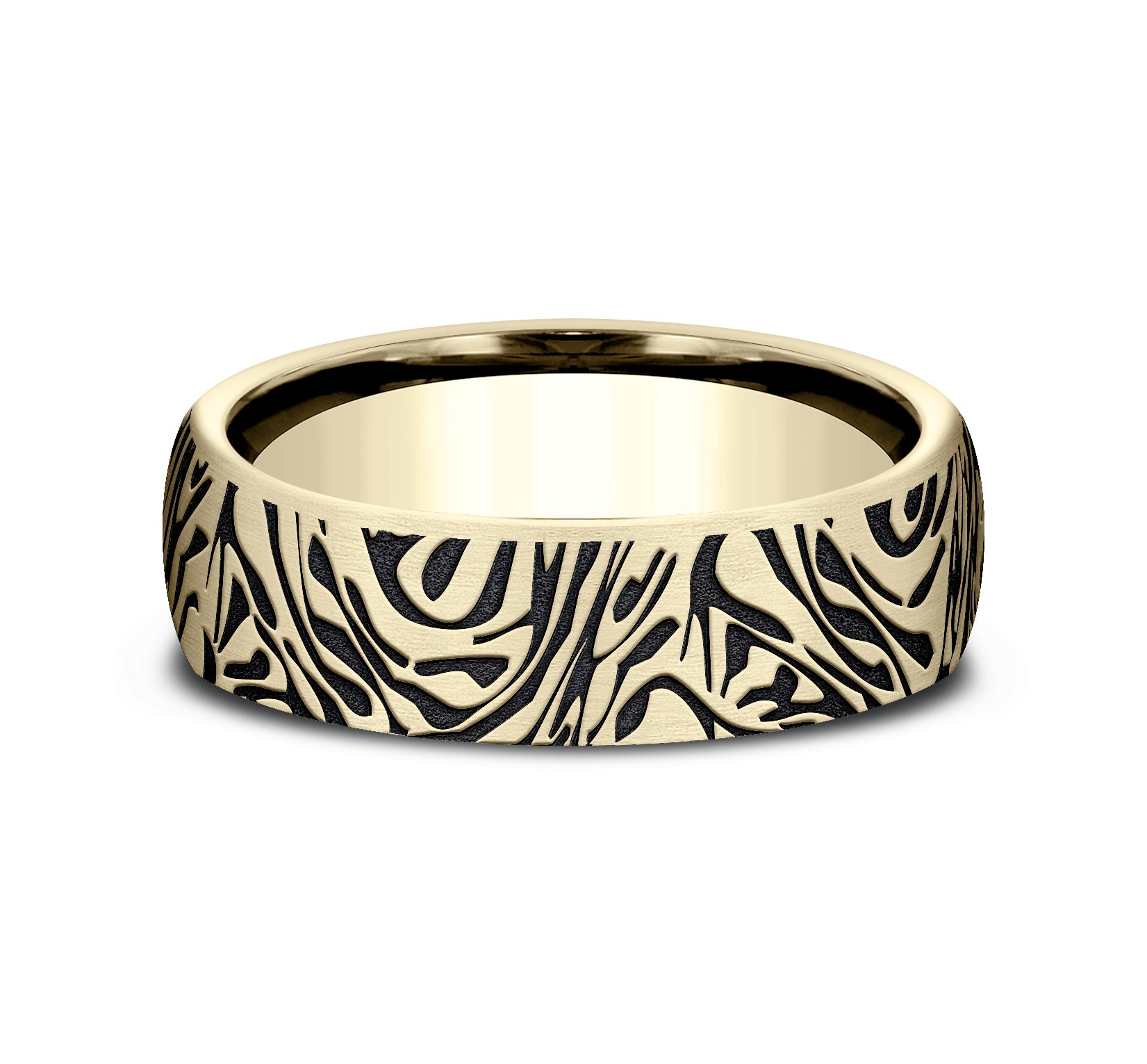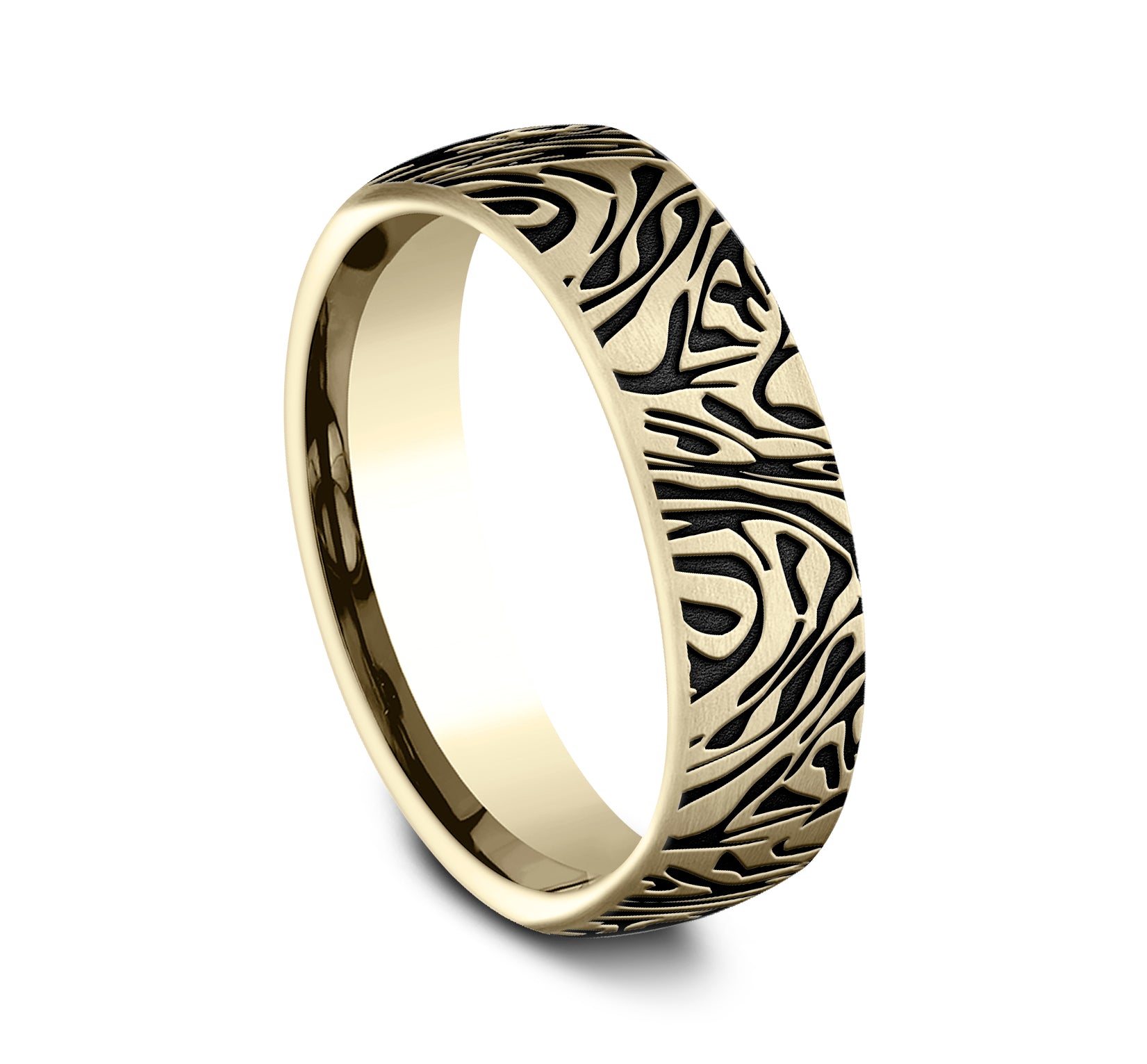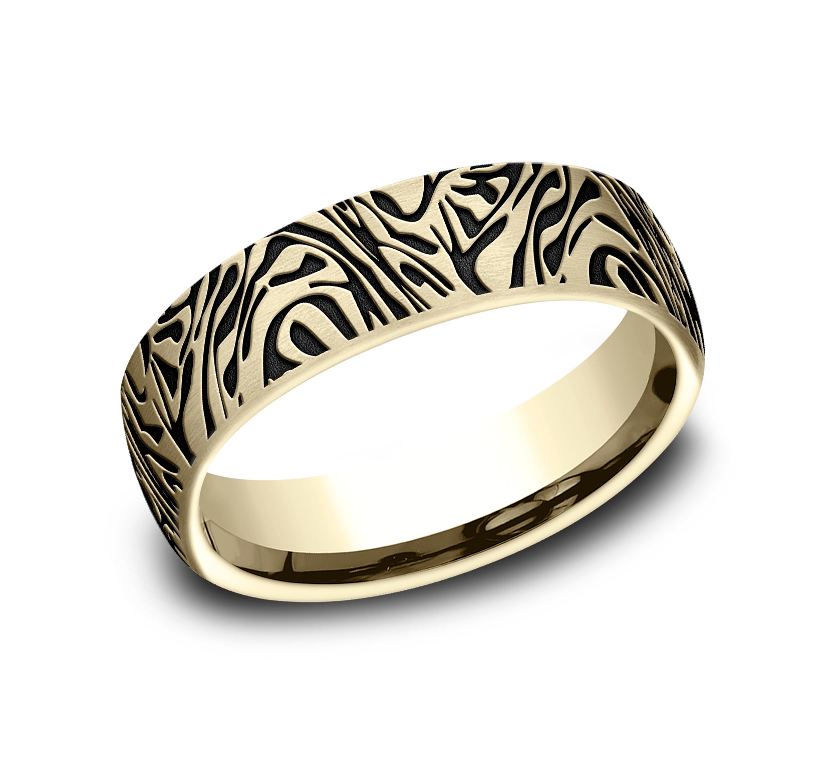 6.5mm, Comfort fit 14K Yellow Gold Faux mokume pattern