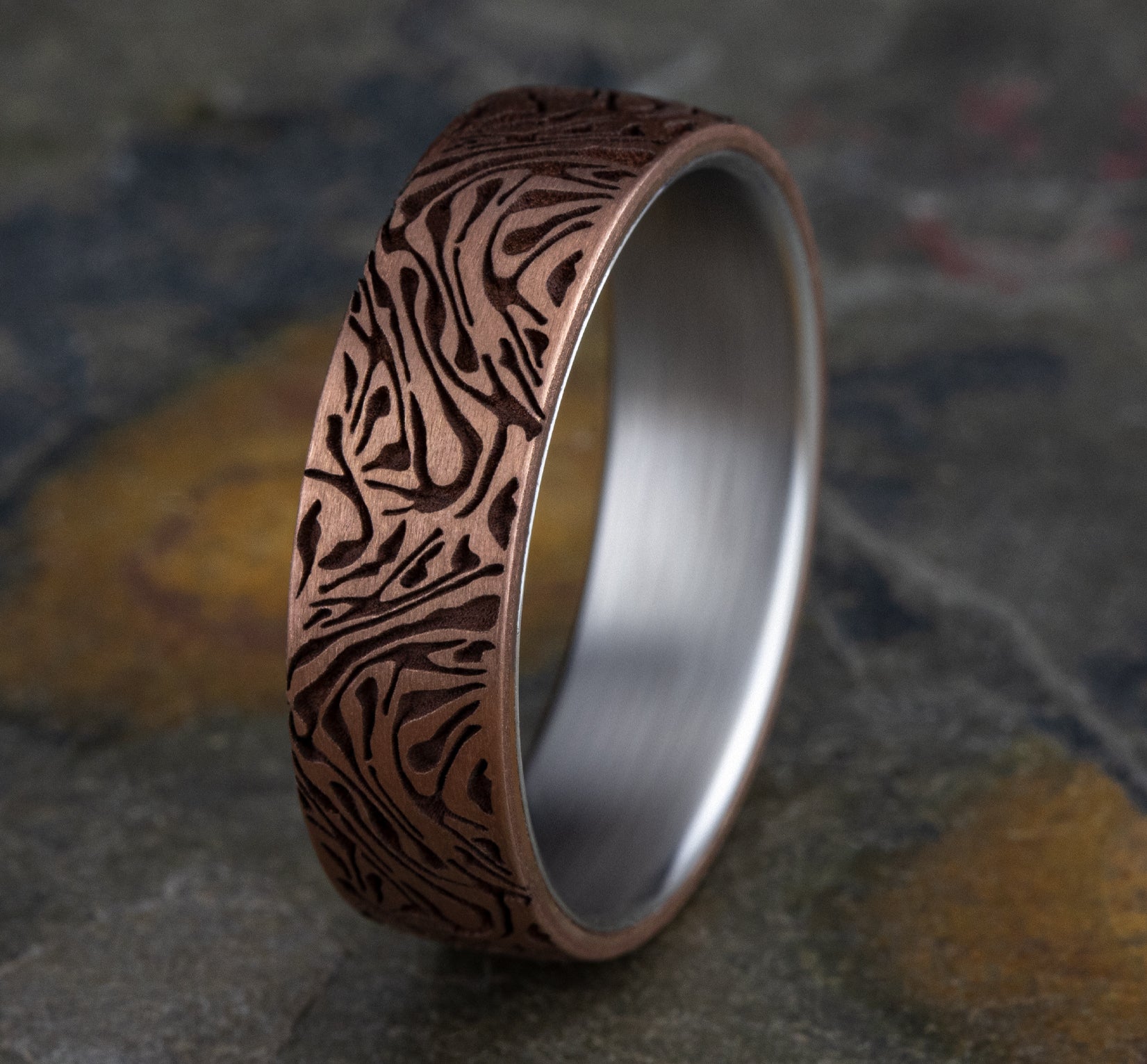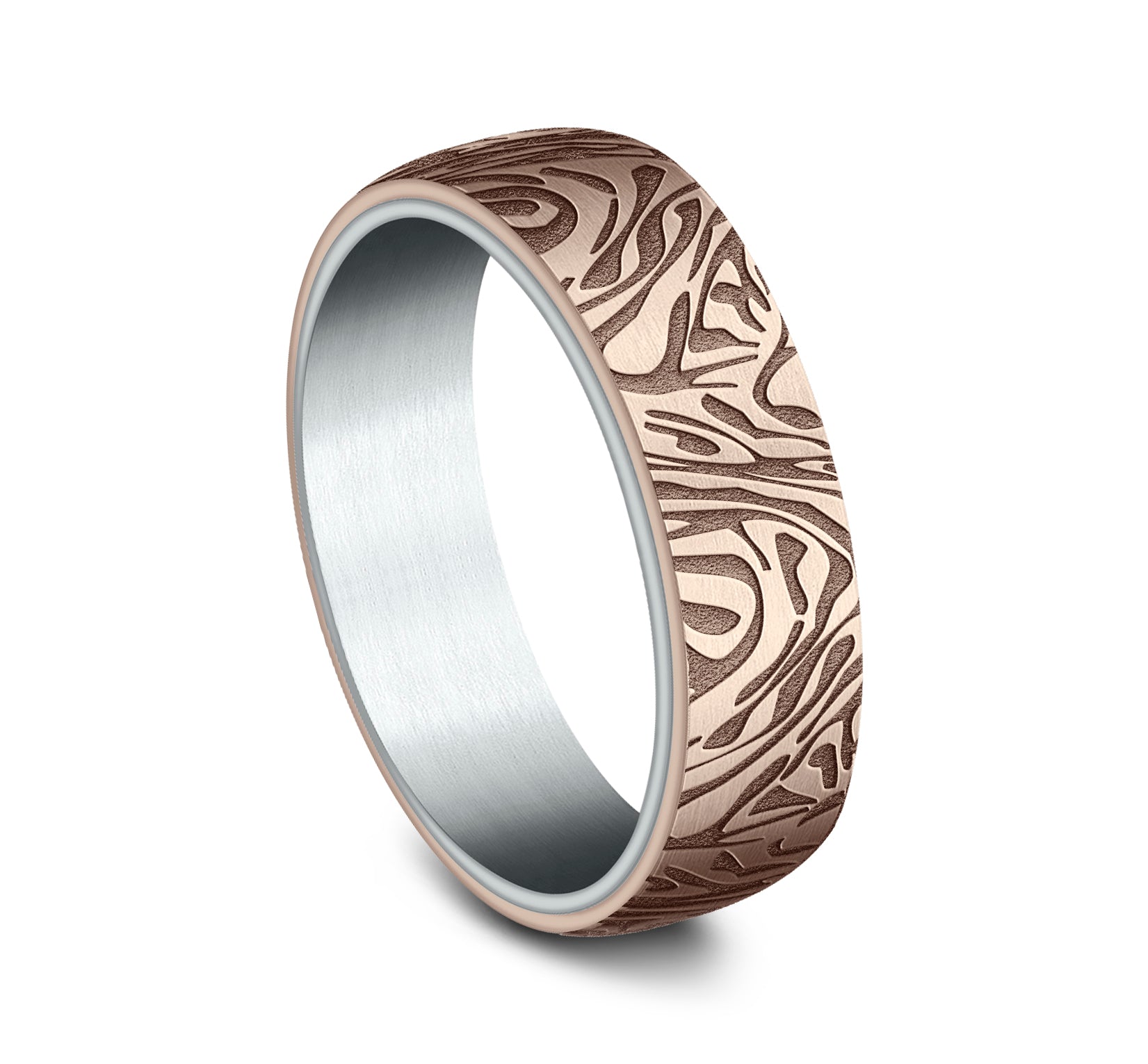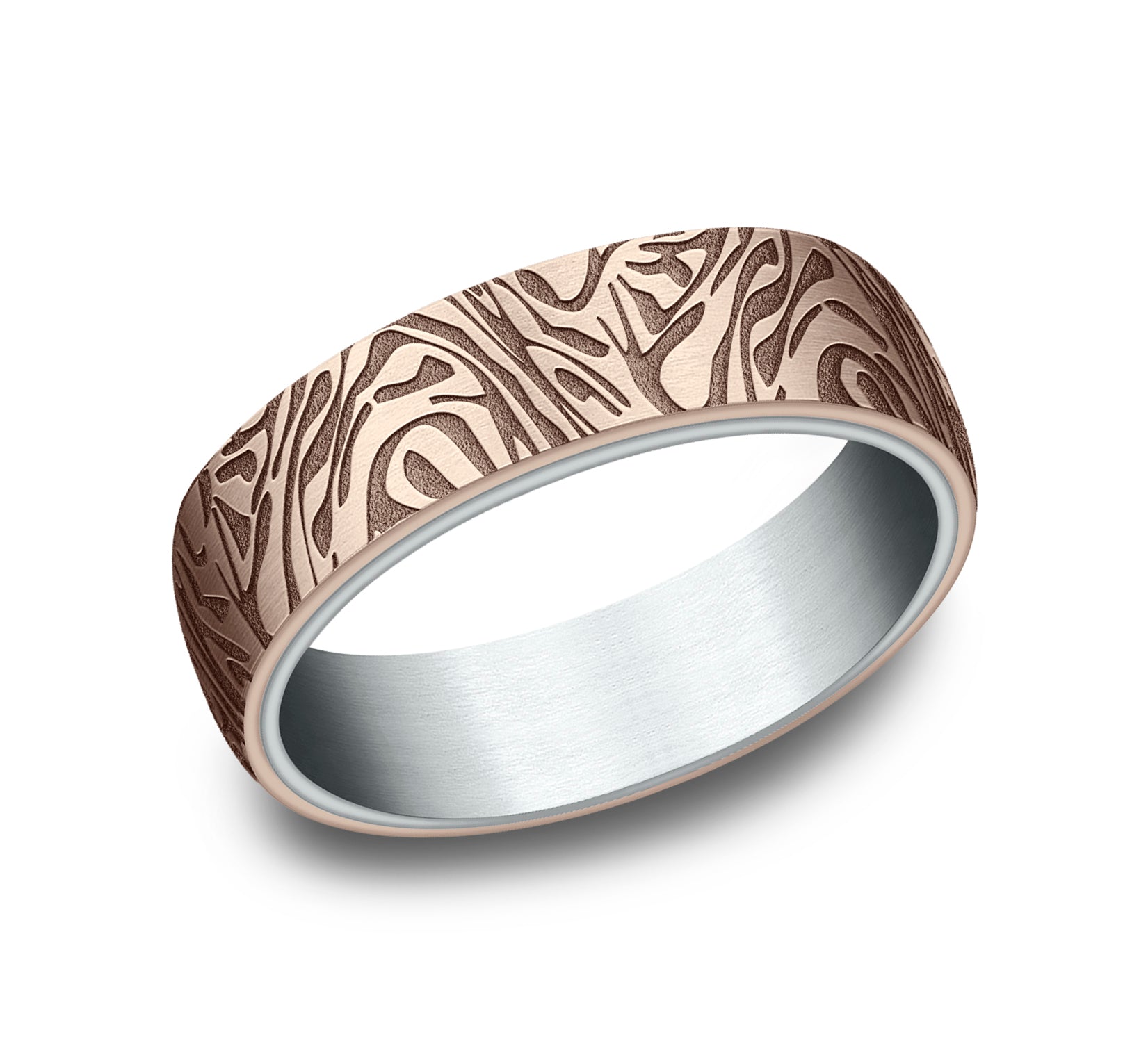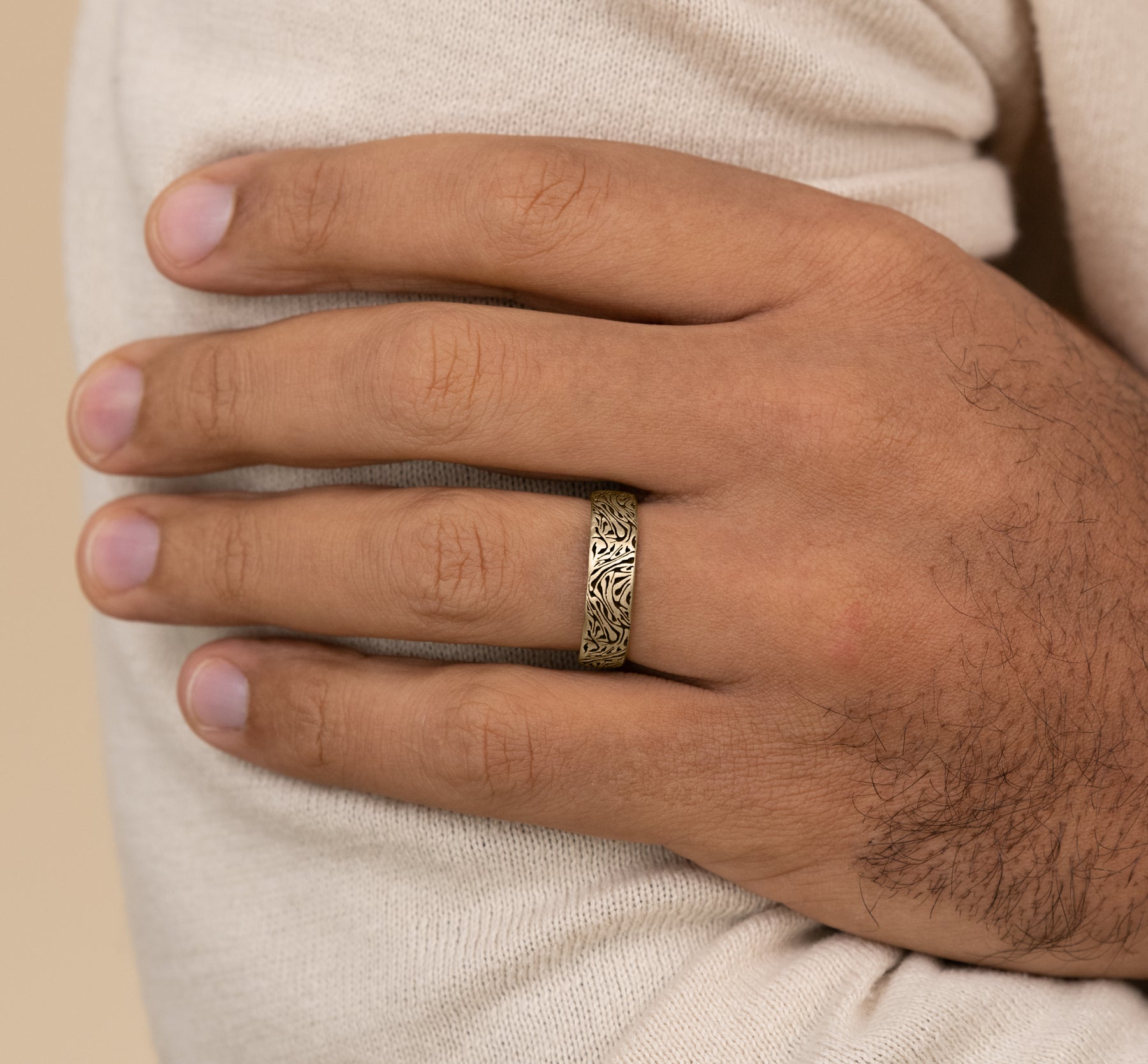 6.5mm, Comfort fit 14K Yellow Gold Faux mokume pattern